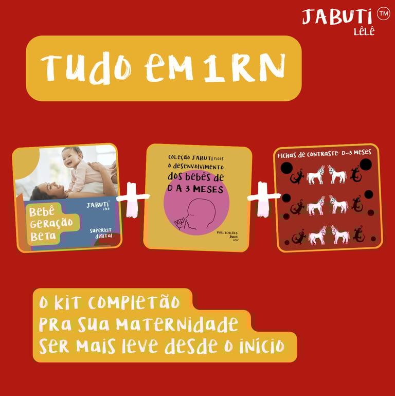 É um combo feito com o que a Jabuti LêLê tem de melhor pra te ajudar na maternidade do seu recém-nascido. Inclui: Superkit Digital Bebê Geração Beta + Fichário de Desenvolvimento dos Bebês de 0 a 3 meses + Fichas de Estímulo Visual. É conjunto inovador, completo e diversificado de materiais de desenvolvimento infantil e apoio à rotina da maternidade, especialmente criado pras famílias e totalmente embasado na ciência da educação integral. Você vai ficar a par de todos os saberes e fazeres essenciais pra conseguir colocar em prática uma maternidade confiante e preparada pro século XXI. São dezenas de materiais totalmente voltados ao dia a dia do cuidado e desenvolvimento de recém-nascidos, entregues em formato pdf, prontos pra serem baixados e usados desde hoje aí na sua casa (e mais alguns bônus). É o material que toda mãe gostaria de ler - e que todo bebê gostaria de que a mamãe lesse!