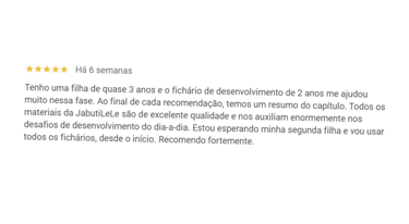 Ao invés de precisar ler dezenas desses livros e artigos científicos pra aprender a usar as ferramentas certas na criação do seu filho(a), o Fichário faz isso por você, trazendo conteúdo essencial, resumido e organizado. Tudo do que você vai precisar é ler uma ficha frente e verso a cada dia (ou algumas vezes na semana). Se você fizer só isso, já é possível saber como ajudar sua criança a estimular determinada habilidade através do brincar. Olhemos por esta óptica: já pensou que uma leitura de menos de 2 minutos pode transformar a rotina com a sua criança e ainda ajudá-la a se desenvolver mais e melhor? Isso é possível: desde que você leia a coisa certa!