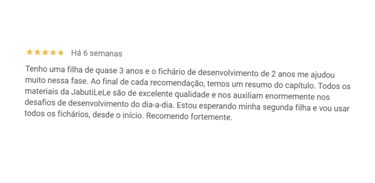 Quando as famílias aprendem a otimizar a ROTINA delas com as crianças, é mais fácil transmitir as lições essenciais pra vida. Quando as famílias se sentem mais CONFIANTES do quê sabem, é mais fácil de aplicarem as ferramentas e ideias certas no momento certo, pra desenvolverem suas crianças de forma consciente, intencional e com objetivos claros. E, quando as famílias percebem que a leitura diária de uma simples ficha (um ato que leva menos de 2 minutos), as ajuda a enriquecer aqueles 20 ou 30 minutinhos de atenção que reservaram pras crianças, pronto! Basta ler a coisa certa, pra que a falta de tempo deixe de ser um problema no seu dia e se torne uma oportunidade. Você resolve o seu problema da rotina corrida - e ainda destrava o desenvolvimento da sua criança.