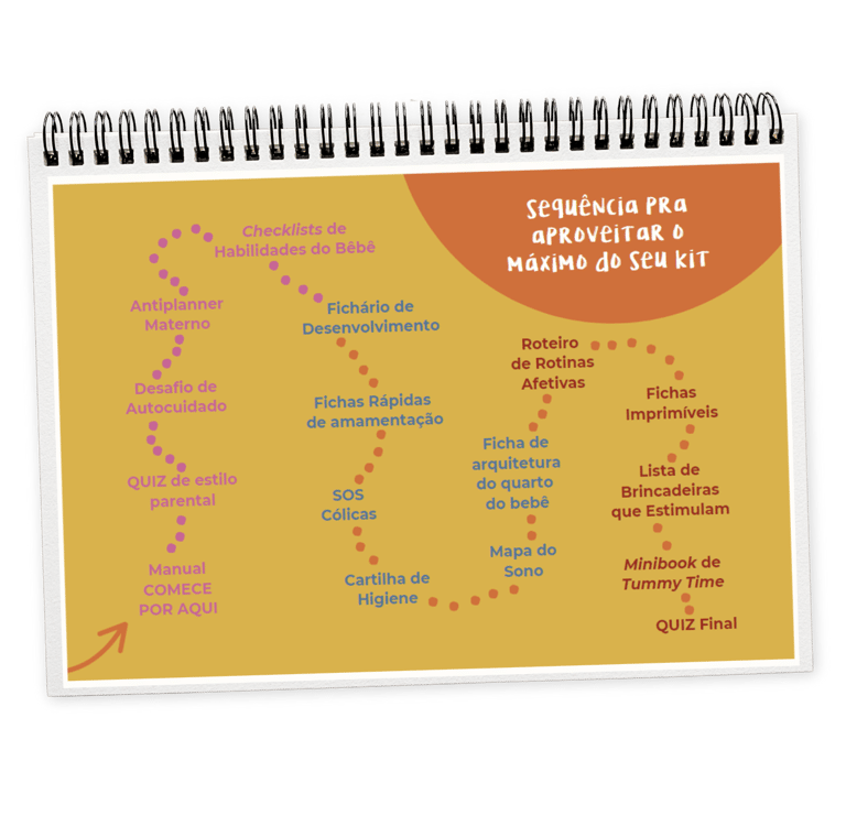 O ideal é que o kit seja comprado antes do nascimento do bebê. Assim, desde a primeira semana de vida, você estará mais orientada, organizada e preparada pra chegada do bebê. Você já conhecerá os desafios mais comuns que poderão vir pela frente e, ainda, saberá quais ferramentas usar pro seu autocuidado emocional e pro cuidado e a educação do seu bebê - desde a saída da maternidade.